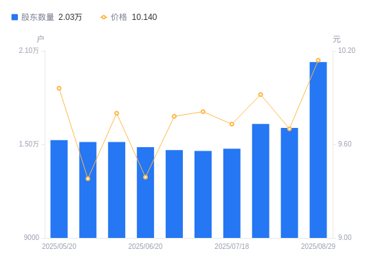 近一年(2024年9月10日至2025年8月29日),华智数媒A股股东户数从1.83万户,增加至2.03万户,增幅10.74%,区间股价上涨51.12%。