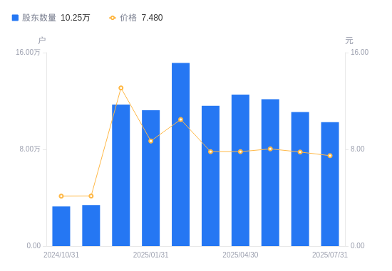 近一年(2024年8月31日至2025年8月31日),中百集团A股股东户数从3.74万户,增加至9.98万户,增幅166.89%,区间股价上涨150.32%。