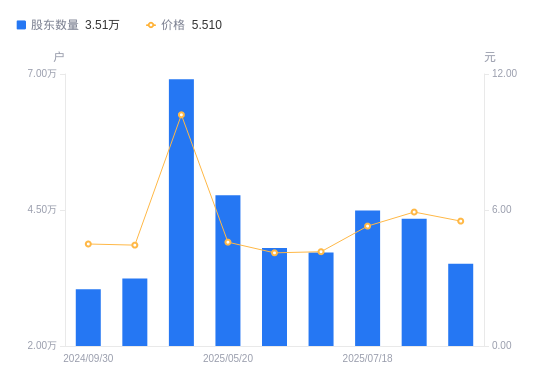 近一年(2024年9月30日至2025年8月31日),ST立方A股股东户数从3.04万户,增加至3.51万户,增幅15.37%,区间股价上涨42.01%。