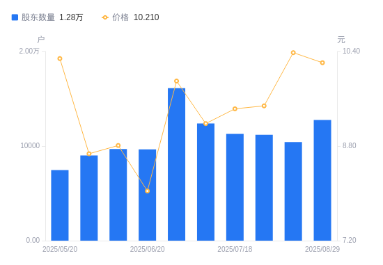 近一年(2024年9月10日至2025年8月29日),农尚环境A股股东户数从8148户,增加至1.28万户,增幅56.60%,区间股价上涨94.11%。