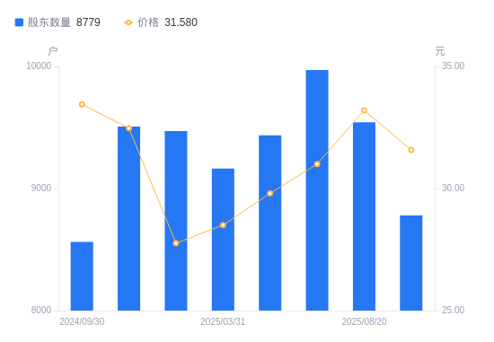 近一年(2024年9月30日至2025年8月29日),骏成科技A股股东户数从8563户,增加至8779户,增幅2.52%,区间股价上涨7.01%。
