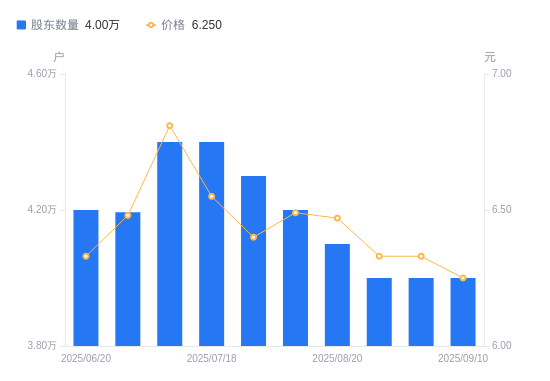 近一年(2024年9月10日至2025年9月10日),大连热电A股股东户数从4.3万户,减低至4万户,降幅6.98%,区间股价上涨28.87%。