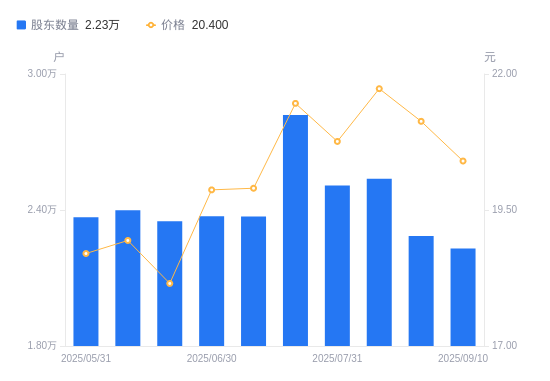 近一年(2024年9月20日至2025年9月10日),丝路视觉A股股东户数从2.67万户,减低至2.23万户,降幅16.41%,区间股价上涨25.00%。