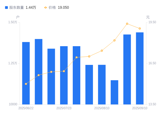 近一年(2024年9月10日至2025年9月10日),久祺股份A股股东户数从1.12万户,增加至1.44万户,增幅28.47%,区间股价上涨109.34%。