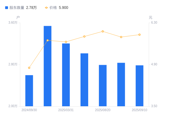 近一年(2024年9月30日至2025年9月10日),钱江生化A股股东户数从2.6万户,增加至2.78万户,增幅7.24%,区间股价上涨32.32%。