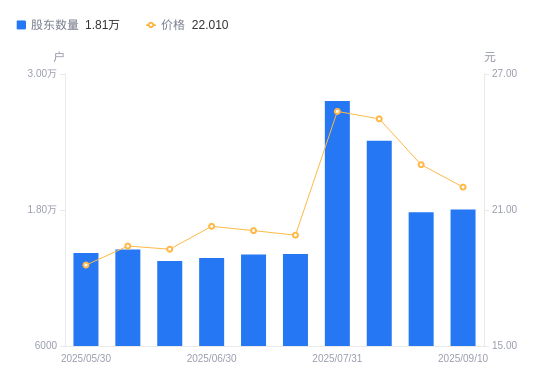 近一年(2024年9月10日至2025年9月10日),彩虹集团A股股东户数从1.72万户,增加至1.81万户,增幅5.22%,区间股价上涨46.73%。