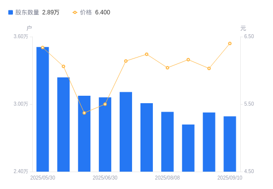 近一年(2024年9月20日至2025年9月10日),海翔药业A股股东户数从2.79万户,增加至2.89万户,增幅3.62%,区间股价上涨20.98%。