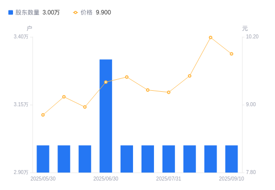 近一年(2024年9月20日至2025年9月10日),茂硕电源A股股东户数3万户保持不变,区间股价上涨40.03%。