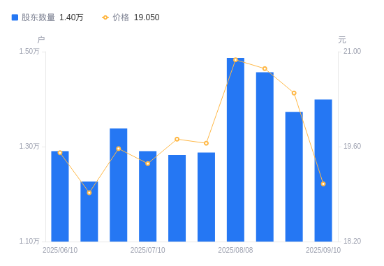 近一年(2024年9月30日至2025年9月10日),鸥玛软件A股股东户数从1.66万户,减低至1.4万户,降幅15.94%,区间股价上涨12.12%。