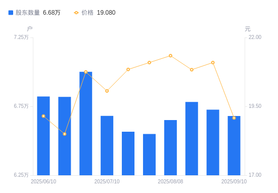 近一年(2024年9月10日至2025年9月10日),航发控制A股股东户数从5.78万户,增加至6.68万户,增幅15.62%,区间股价上涨2.59%。