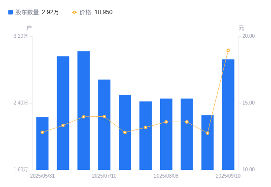 近一年(2024年9月10日至2025年9月10日),科新机电A股股东户数从1.84万户,增加至2.92万户,增幅59.33%,区间股价上涨117.02%。