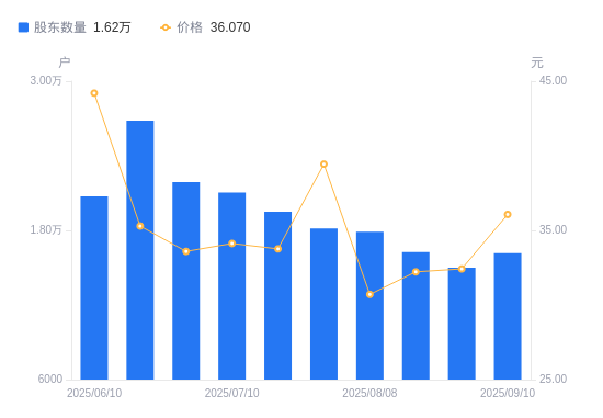 近一年(2024年9月10日至2025年9月10日),共创草坪A股股东户数从9353户,增加至1.62万户,增幅72.78%,区间股价上涨109.71%。