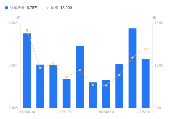9月12日消息,数据显示,截至2025年9月10日,国芳集团A股股东总户数为6.78万户,较上期(2025年8月29日)减少8778户,降幅11.47%。公司最新A股总股本为6.66亿股,其中流通A股6.66亿股,户均持有流通A股数量为9829.53股,较上期增加1127.4股,增幅12.96%;户均持流通A股市值12.97万元,较上期增加2.04万元,增幅18.62%。