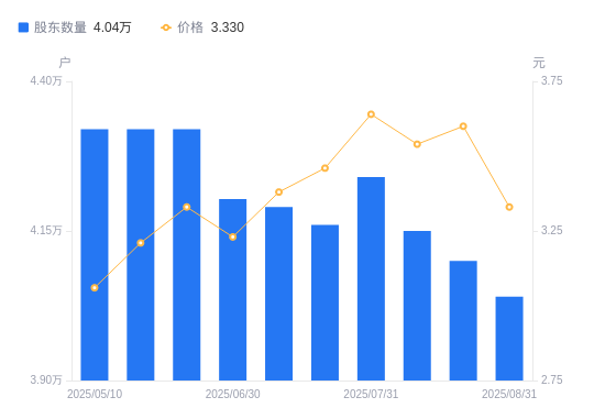 近一年(2024年9月30日至2025年8月31日),华仁药业A股股东户数从4.64万户,减低至4.04万户,降幅12.92%,区间股价上涨3.10%。