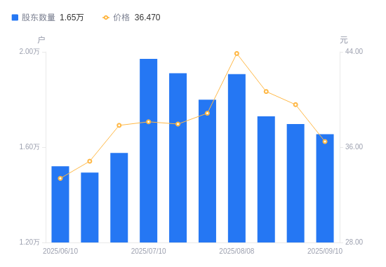 近一年(2024年9月10日至2025年9月10日),久之洋A股股东户数从1.57万户,增加至1.65万户,增幅5.04%,区间股价上涨33.98%。