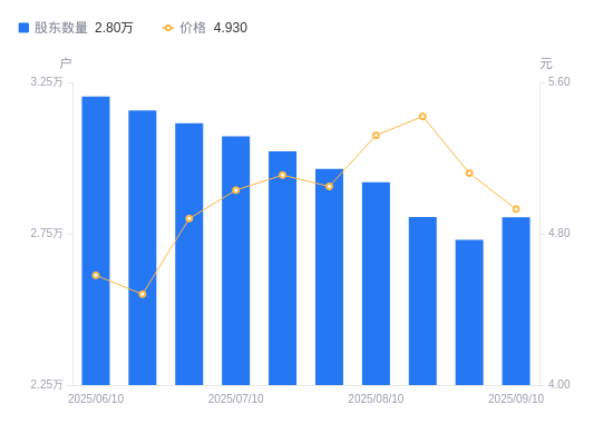 近一年(2024年9月30日至2025年9月10日),华平股份A股股东户数从3.07万户,减低至2.8万户,降幅8.67%,区间股价上涨39.66%。