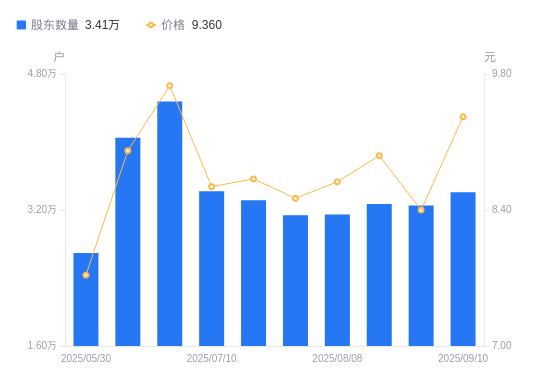 9月12日消息,数据显示,截至2025年8月29日,普路通A股股东总户数为3.25万户,较上期(2025年8月20日)减少153户,降幅0.47%。公司最新A股总股本为3.73亿股,其中流通A股3.73亿股,户均持有流通A股数量为1.15万股,较上期增加53.64股,增幅0.47%;户均持流通A股市值9.63万元,较上期减少5938.51元,降幅5.81%。