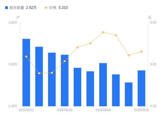 近一年(2024年9月20日至2025年9月10日),迦南科技A股股东户数从2.79万户,增加至2.92万户,增幅4.56%,区间股价上涨61.40%。