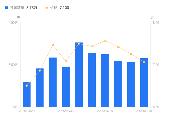 近一年(2024年9月10日至2025年9月10日),闰土股份A股股东户数从3.27万户,增加至3.73万户,增幅14.05%,区间股价上涨26.47%。
