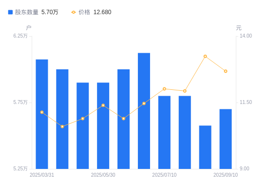 近一年(2024年9月30日至2025年9月10日),晋控煤业A股股东户数从4.06万户,增加至5.7万户,增幅40.30%,区间股价下跌17.37%。