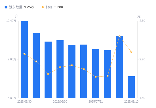 近一年(2024年9月30日至2025年9月10日),利源股份A股股东户数从6.38万户,增加至9.25万户,增幅44.94%,区间股价上涨82.40%。