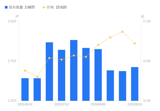 近一年(2024年9月10日至2025年9月10日),新宝股份A股股东户数从2.63万户,增加至2.68万户,增幅1.66%,区间股价上涨31.66%。