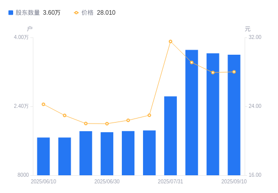近一年(2024年9月10日至2025年9月10日),奇正藏药A股股东户数从2.02万户,增加至3.6万户,增幅78.53%,区间股价上涨51.89%。