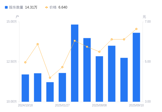 9月17日消息,数据显示,截至2025年8月8日,飞利信A股股东总户数为12.85万户,较上期(2025年6月30日)减少1.13万户,降幅8.10%。公司最新A股总股本为14.35亿股,其中流通A股13.18亿股,户均持有流通A股数量为1.03万股,较上期增加831.6股,增幅8.82%;户均持流通A股市值5.64万元,较上期增加2216.46元,增幅4.09%。