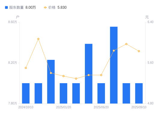 近一年(2024年9月30日至2025年9月10日),数码视讯A股股东户数从8.81万户,减低至8万户,降幅9.15%,区间股价上涨21.97%。