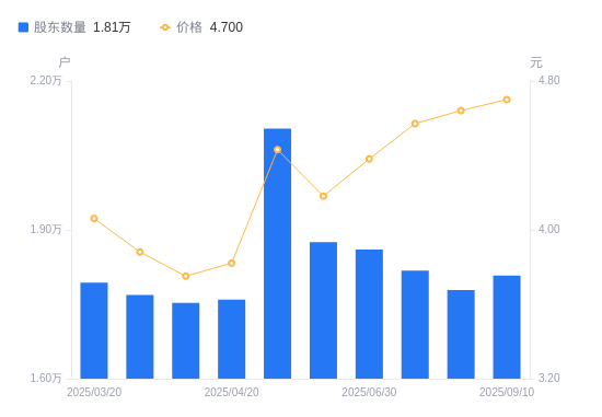 近一年(2024年9月30日至2025年9月10日),联泰环保A股股东户数从1.88万户,减低至1.81万户,降幅3.70%,区间股价上涨37.79%。