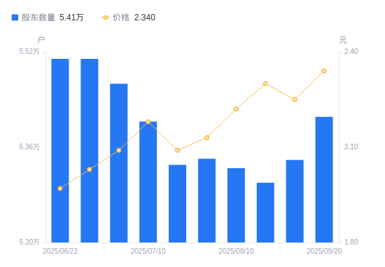 近一年(2024年9月20日至2025年9月20日),节能铁汉A股股东户数从4.92万户,增加至5.41万户,增幅9.97%,区间股价上涨72.06%。