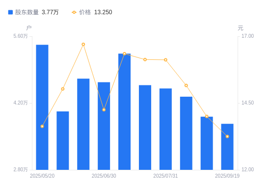 近一年(2024年9月30日至2025年9月19日),哈三联A股股东户数从3.06万户,增加至3.77万户,增幅23.26%,区间股价上涨50.57%。