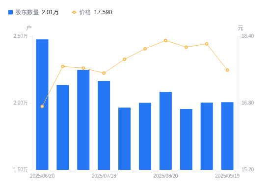 近一年(2024年9月20日至2025年9月19日),甬金股份A股股东户数从1.49万户,增加至2.01万户,增幅35.11%,区间股价上涨14.35%。