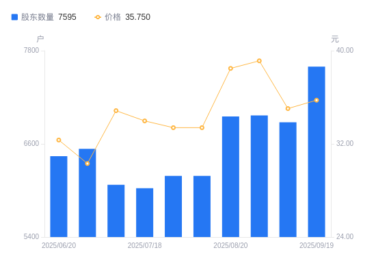 近一年(2024年9月20日至2025年9月19日),金橙子A股股东户数从4664户,增加至7595户,增幅62.84%,区间股价上涨148.16%。