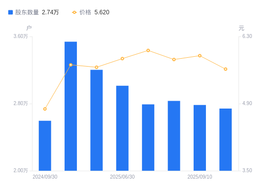 近一年(2024年9月30日至2025年9月20日),钱江生化A股股东户数从2.6万户,增加至2.74万户,增幅5.64%,区间股价上涨26.04%。