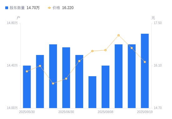 近一年(2024年9月20日至2025年8月29日),华兰生物A股股东户数从15.6万户,减低至14.6万户,降幅6.41%,区间股价上涨21.79%。