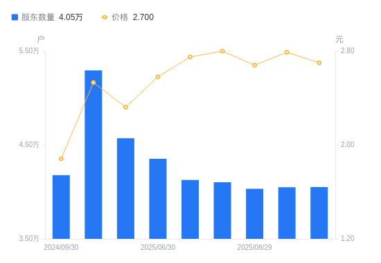近一年(2024年9月30日至2025年9月19日),佳隆股份A股股东户数从4.18万户,减低至4.05万户,降幅3.03%,区间股价上涨57.71%。