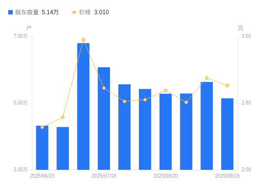 近一年(2024年9月20日至2025年9月19日),南山控股A股股东户数从4.67万户,增加至5.14万户,增幅10.03%,区间股价上涨48.28%。