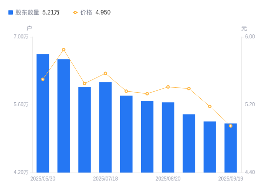 近一年(2024年9月20日至2025年9月19日),安诺其A股股东户数从6.42万户,减低至5.21万户,降幅18.75%,区间股价上涨28.24%。