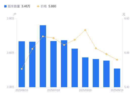 近一年(2024年9月20日至2025年9月19日),全通教育A股股东户数从4.15万户,减低至3.46万户,降幅16.57%,区间股价上涨37.06%。