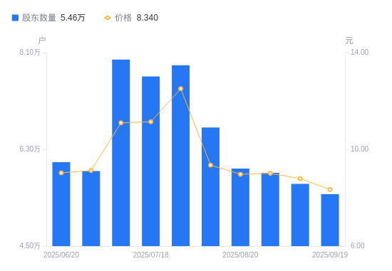 近一年(2024年9月30日至2025年9月19日),ST应急A股股东户数从4.32万户,增加至5.46万户,增幅26.44%,区间股价上涨15.40%。