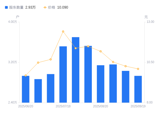 近一年(2024年9月30日至2025年9月19日),世纪天鸿A股股东户数从2.98万户,减低至2.93万户,降幅1.65%,区间股价上涨12.67%。
