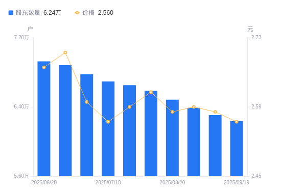 近一年(2024年9月20日至2025年9月19日),ST华闻A股股东户数从8.98万户,减低至6.24万户,降幅30.52%,区间股价上涨85.51%。