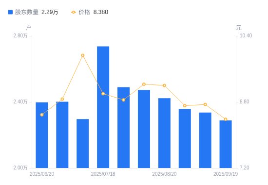 近一年(2024年9月20日至2025年9月19日),英力特A股股东户数从2.6万户,减低至2.29万户,降幅11.95%,区间股价上涨43.49%。