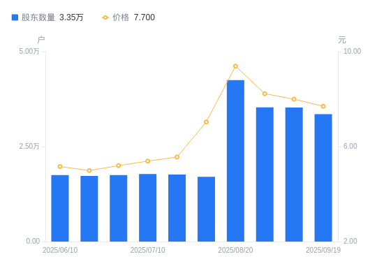 近一年(2024年9月20日至2025年9月19日),利德曼A股股东户数从1.87万户,增加至3.35万户,增幅79.06%,区间股价上涨85.99%。