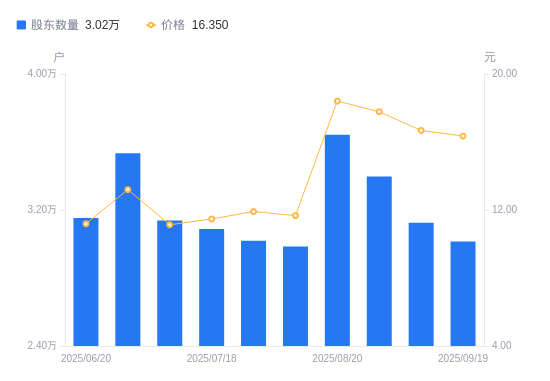 近一年(2024年9月20日至2025年9月19日),*ST汇科A股股东户数从3.51万户,减低至3.02万户,降幅14.07%,区间股价上涨56.68%。