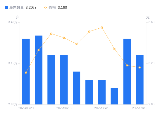 近一年(2024年9月20日至2025年9月19日),华塑控股A股股东户数从3.6万户,减低至3.2万户,降幅11.11%,区间股价上涨24.90%。