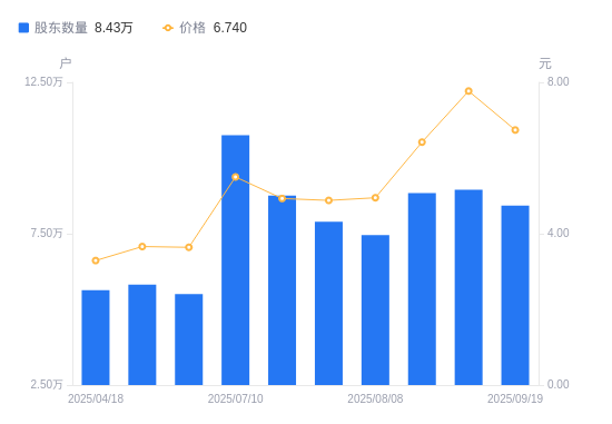 近一年(2024年9月20日至2025年9月19日),国际复材A股股东户数从8.1万户,增加至8.43万户,增幅4.12%,区间股价上涨97.65%。