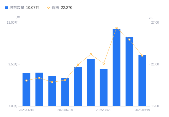 近一年(2024年9月30日至2025年9月19日),华力创通A股股东户数从9.78万户,增加至10.07万户,增幅2.93%,区间股价上涨21.83%。
