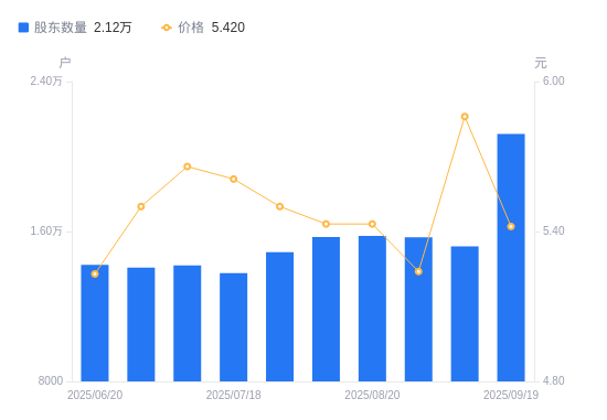 近一年(2024年9月20日至2025年9月19日),罗普斯金A股股东户数从1.55万户,增加至2.12万户,增幅36.45%,区间股价上涨9.49%。